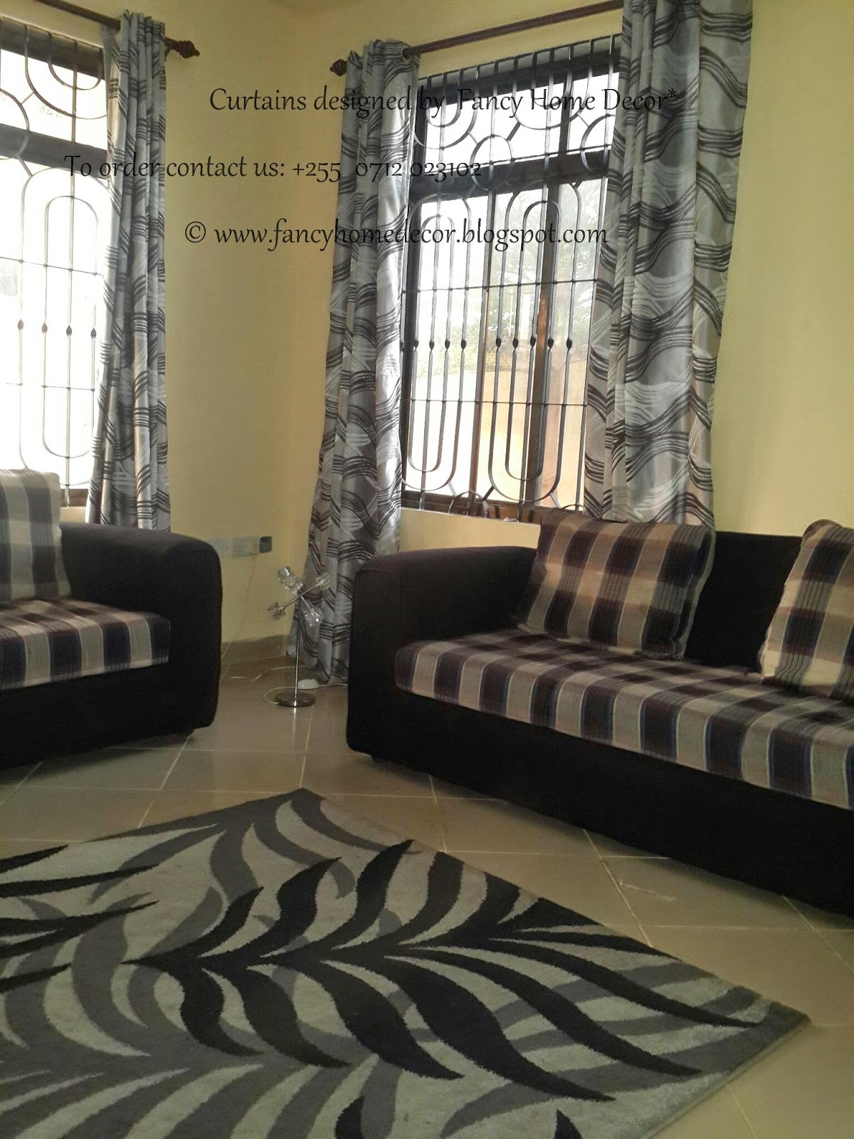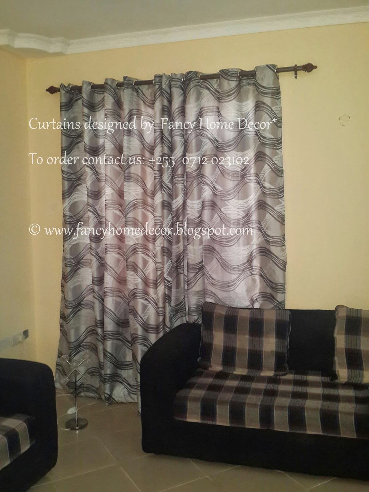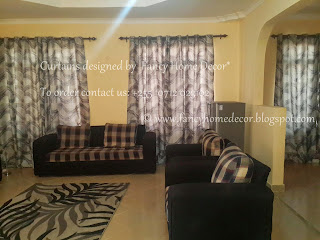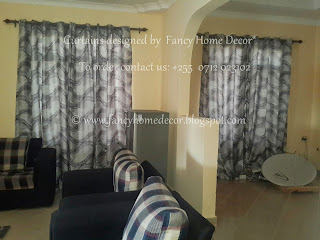 Mteja aliweka oda ya mapazia ya sebuleni na dinning kwa madirisha manne. Nika design na baada ya kukamilika nikaenda kumfitishia nyumbani kwake Mikocheni.