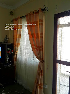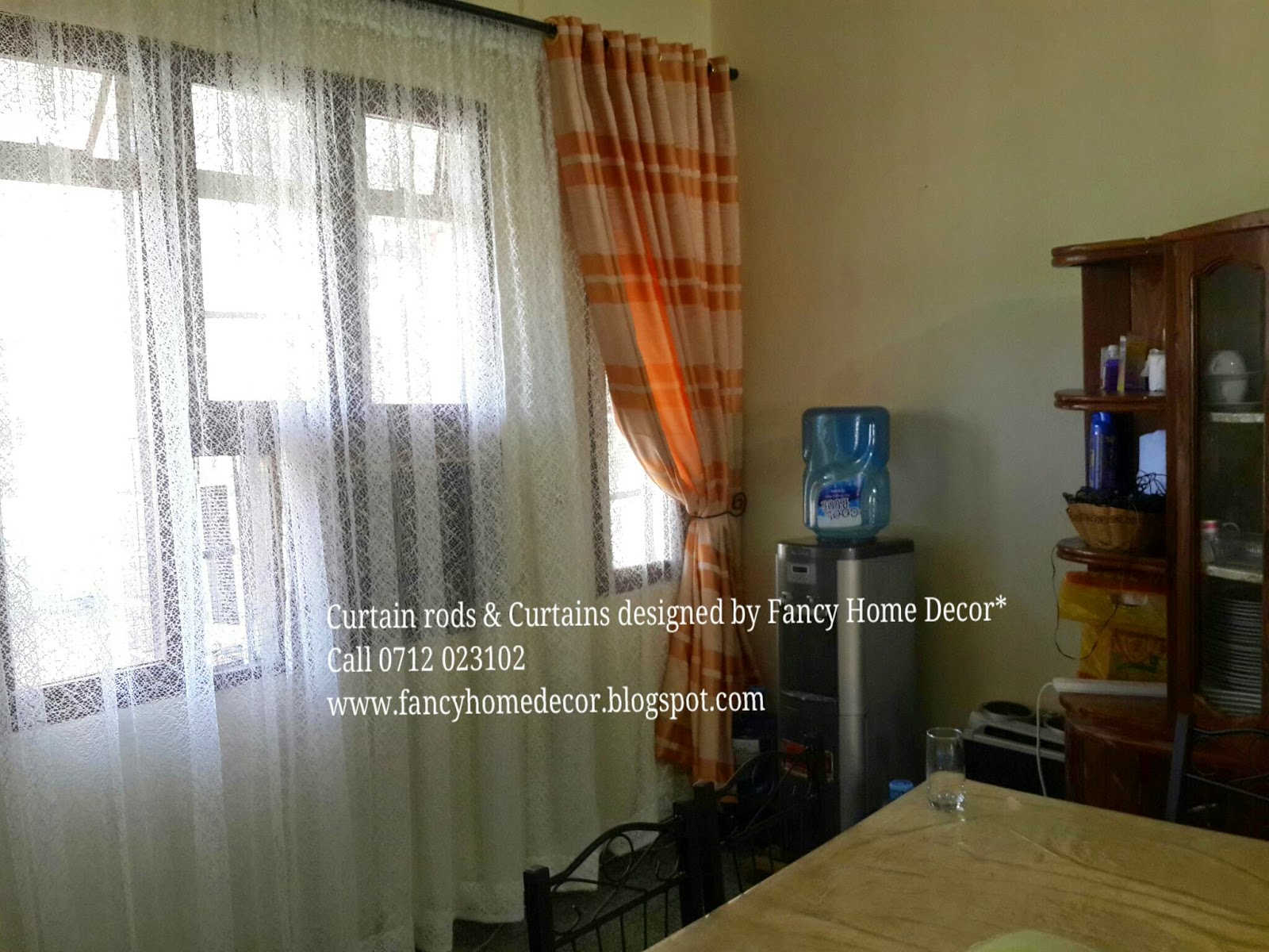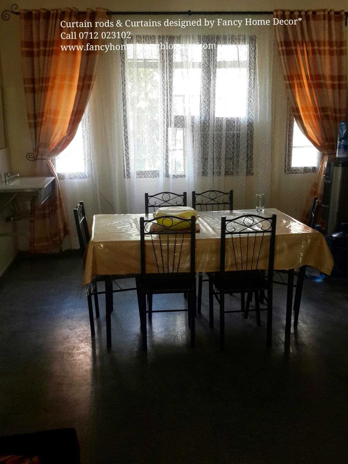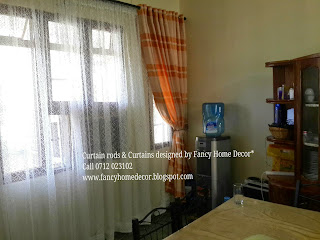 Mapazia haya pamoja na bomba zake za kuwekea pazia ni kazi ya Fancy Home Decor....Tulizifunga kwa mteja Upanga na kuyaweka sebuleni, dining pamoja na jikoni.