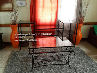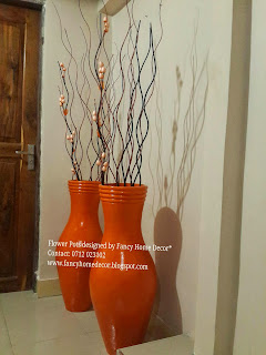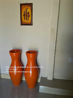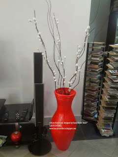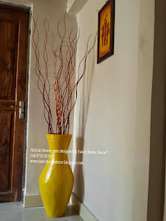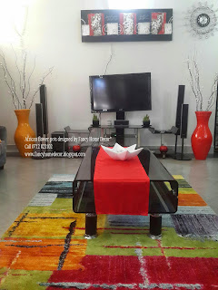 | #Red & #Yellow flower pots...matching with carpet, red table runner & red n black painting |
