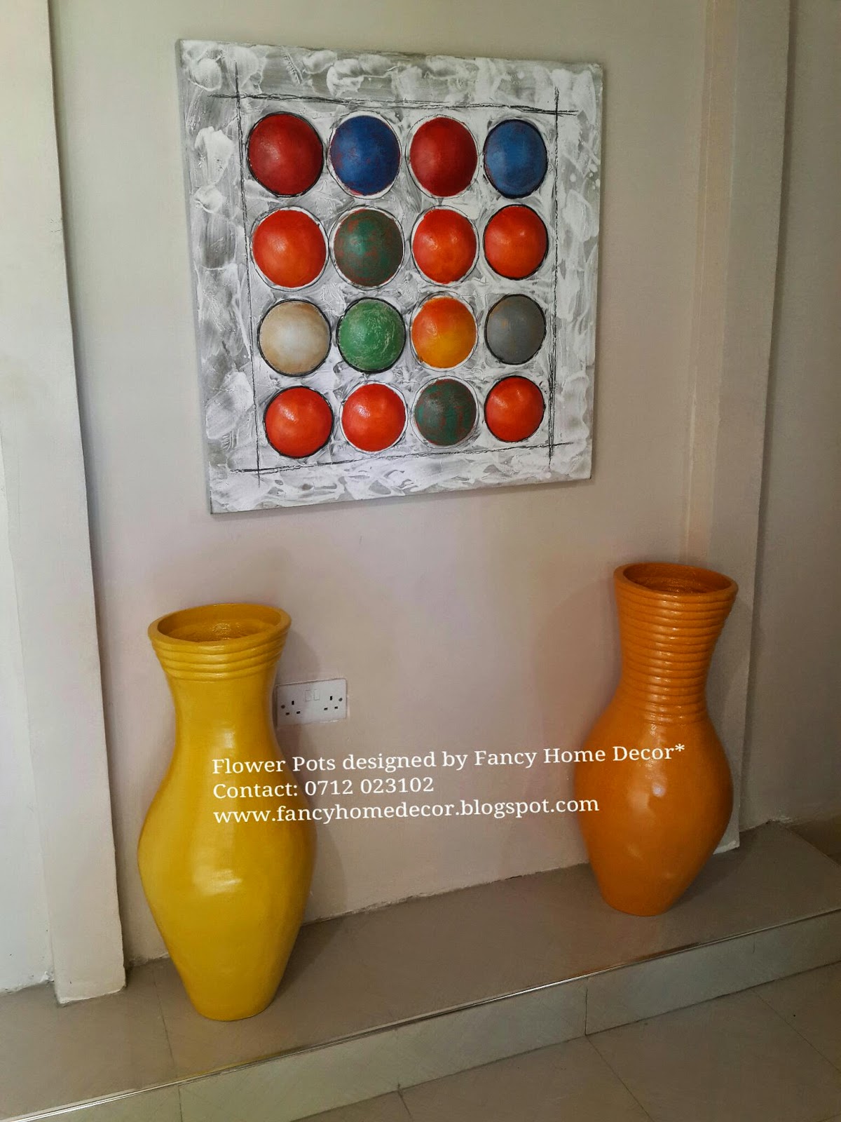 | #Yellow pots...matching with colourful painting |