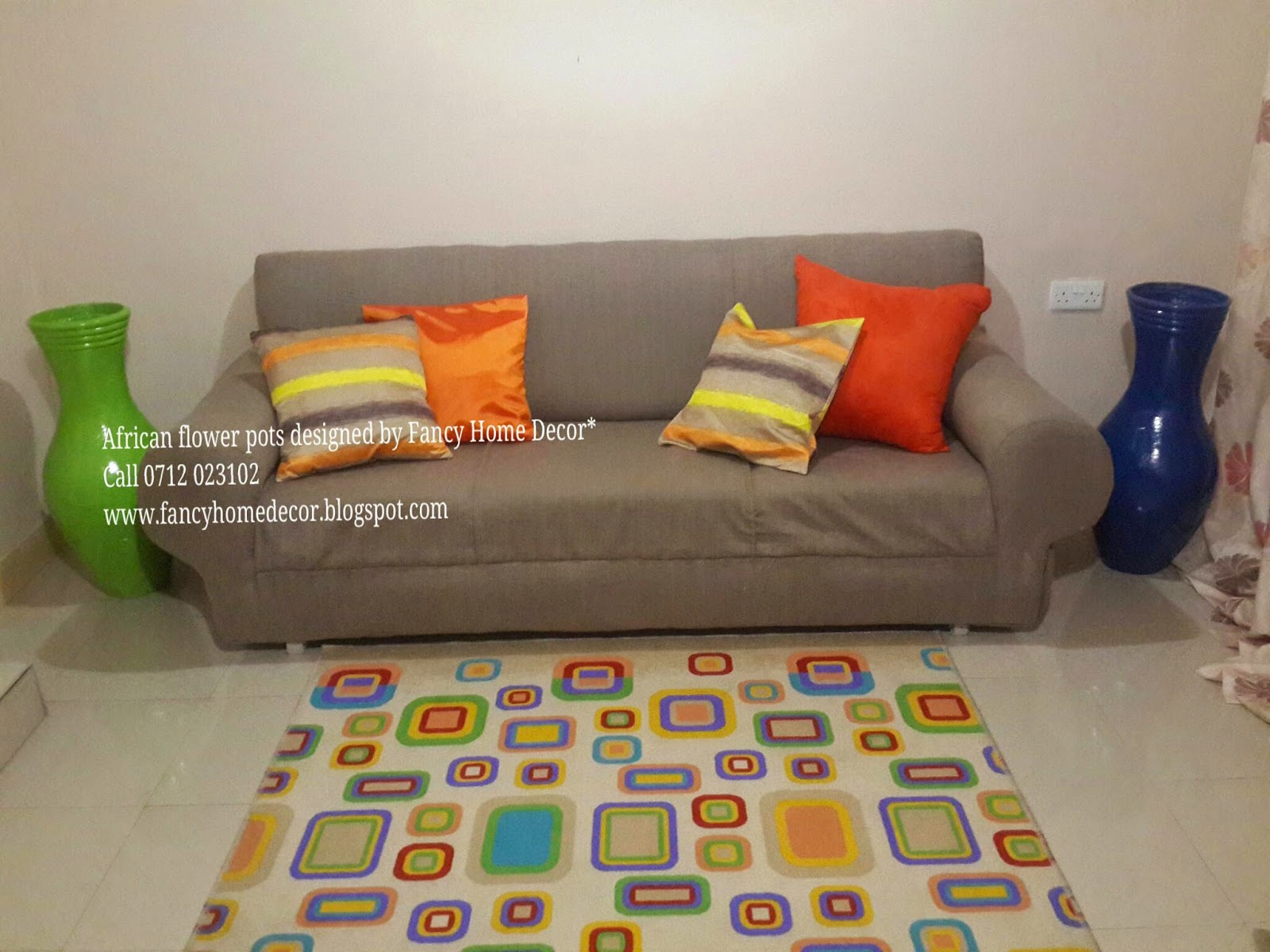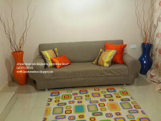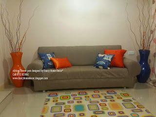 | #Orange & #Blue pot matching with cushion covers |