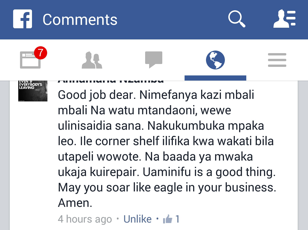 HAPPY CUSTOMER...THE CORNER SHELF WAS DELIVERED TO MY CUSTOMER AT SINZA.